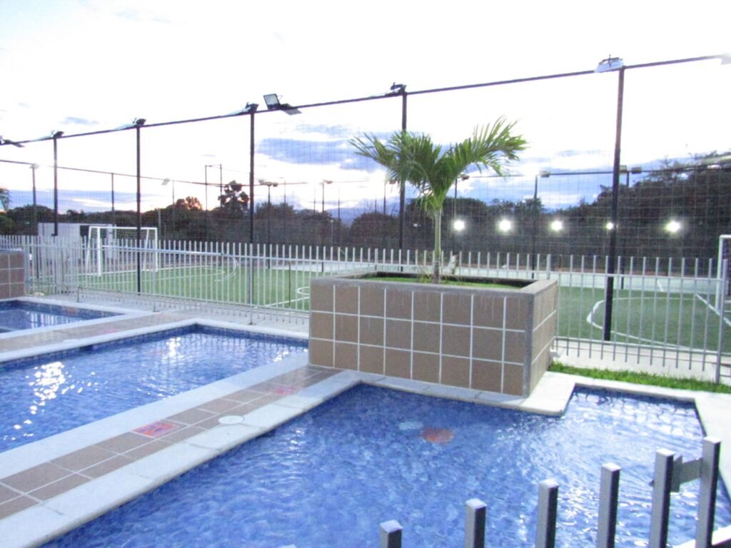 *Piscina para niños y adultos, BBQ, Cancha de fútbol sintética, Cancha de tennis, Salón social, Parqueaderos de visitantes